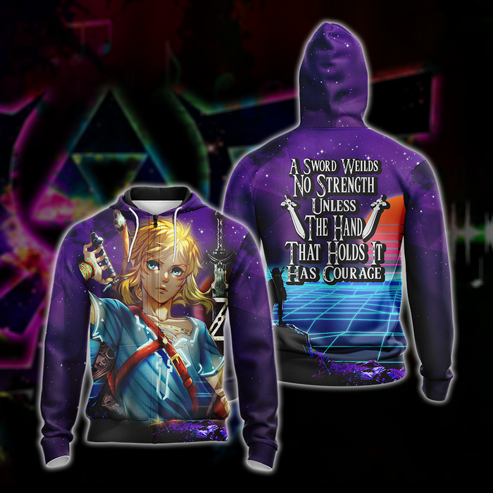 A sword wields no strength unless the hand that holds it has courage The legend of Zelda All Over Print T-shirt Zip Hoodie Pullover Hoodie