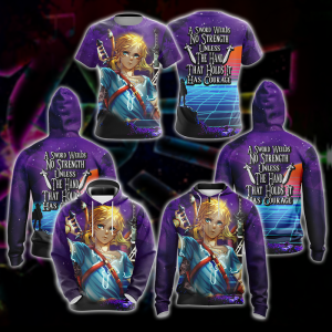 A sword wields no strength unless the hand that holds it has courage The legend of Zelda All Over Print T-shirt Zip Hoodie Pullover Hoodie with the big pocket front. It’s a good gift for birthday/Christmas and so on.