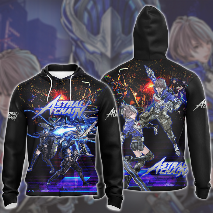 Astral Chain Video Game All Over Printed T-shirt Tank Top Zip Hoodie Pullover Hoodie Hawaiian Shirt Beach Shorts Joggers with the big pocket front. It’s a good gift for birthday/Christmas and so on.