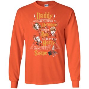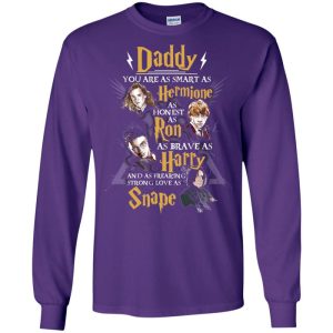 Daddy You Are As Smart As Hermione As Honest As Ron As Brave As Harry Harry Potter Fan T-shirt with polyester is extremely soft and breathable and the sublimation printing technique turns out an awesome design. Colors are guaranteed not to fade. Doesn’t wrinkle.