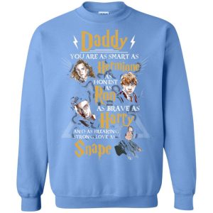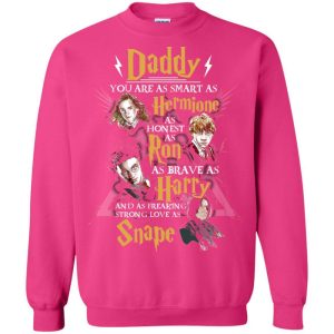 Daddy You Are As Smart As Hermione As Honest As Ron As Brave As Harry Harry Potter Fan T-shirt with polyester is extremely soft and breathable and the sublimation printing technique turns out an awesome design. Colors are guaranteed not to fade. Doesn’t wrinkle.