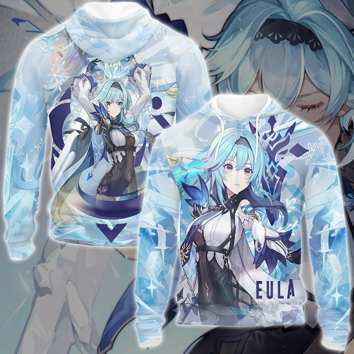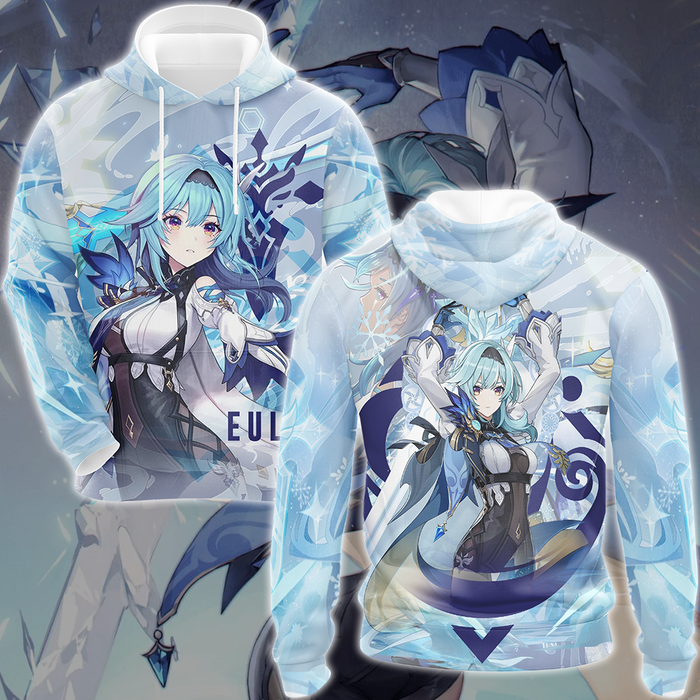 Genshin Impact Eula Video Game All Over Printed T-shirt Tank Top Zip Hoodie Pullover Hoodie Hawaiian Shirt Beach Shorts Joggers with the big pocket front. It’s a good gift for birthday/Christmas and so on.
