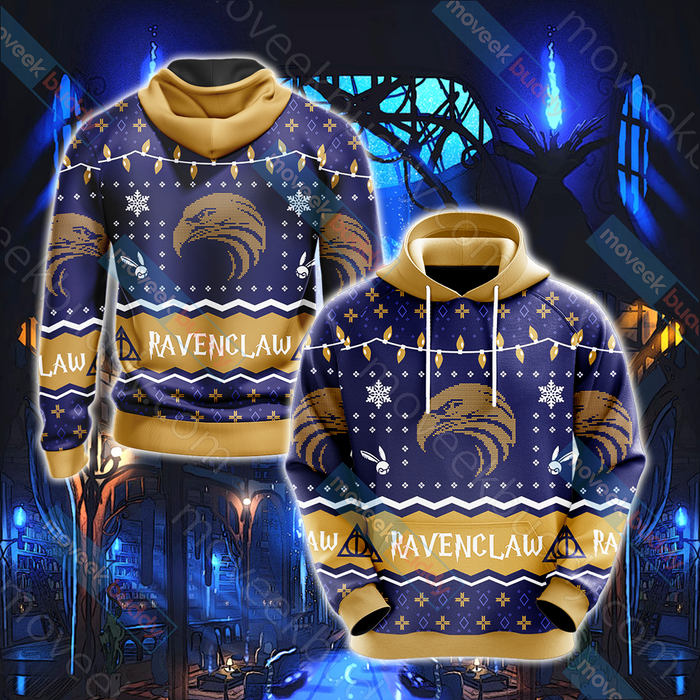 Harry Potter – Ravenclaw House Christmas Style Unisex 3D T-shirt with the big pocket front. It’s a good gift for birthday/Christmas and so on.