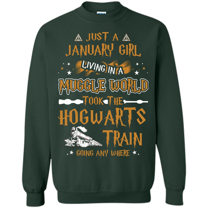 Harry Potter T-shirt Just A January Girl Living In A Muggle World with polyester is extremely soft and breathable and the sublimation printing technique turns out an awesome design. Colors are guaranteed not to fade. Doesn’t wrinkle.