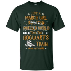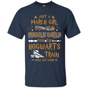 Harry Potter T-shirt Just A March Girl Living In A Muggle World with polyester is extremely soft and breathable and the sublimation printing technique turns out an awesome design. Colors are guaranteed not to fade. Doesn’t wrinkle.