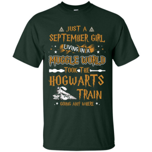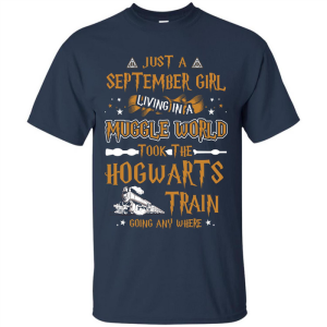 Harry Potter T-shirt Just A September Girl Living In A Muggle World with polyester is extremely soft and breathable and the sublimation printing technique turns out an awesome design. Colors are guaranteed not to fade. Doesn’t wrinkle.