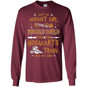 Harry Potter T-shirt Just An August Girl Living In A Muggle World with polyester is extremely soft and breathable and the sublimation printing technique turns out an awesome design. Colors are guaranteed not to fade. Doesn’t wrinkle.