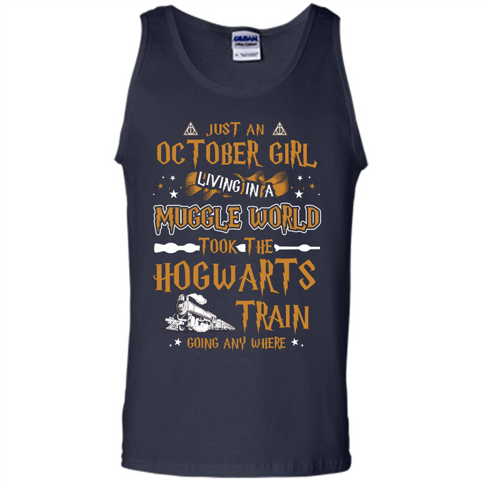 Harry Potter T-shirt Just An October Girl Living In A Muggle World with polyester is extremely soft and breathable and the sublimation printing technique turns out an awesome design. Colors are guaranteed not to fade. Doesn’t wrinkle.