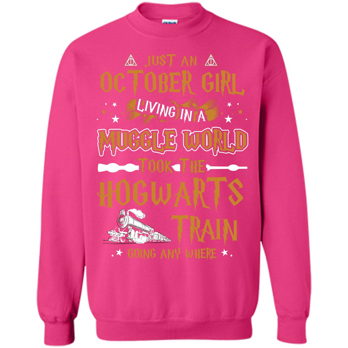 Harry Potter T-shirt Just An October Girl Living In A Muggle World with polyester is extremely soft and breathable and the sublimation printing technique turns out an awesome design. Colors are guaranteed not to fade. Doesn’t wrinkle.