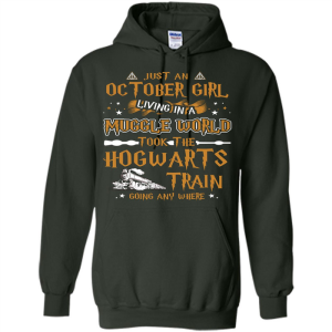Harry Potter T-shirt Just An October Girl Living In A Muggle World with the big pocket front. It’s a good gift for birthday/Christmas and so on.