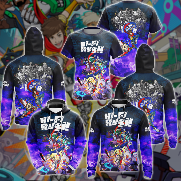 Hi-Fi RUSH Video Game 3D All Over Printed T-shirt Tank Top Zip Hoodie Pullover Hoodie Hawaiian Shirt Beach Shorts Jogger with the big pocket front. It’s a good gift for birthday/Christmas and so on.