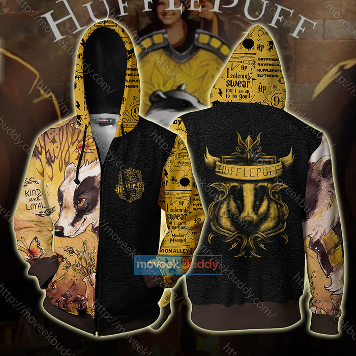 Hufflepuff House Kind And Loyal Harry Potter Unisex 3D T-shirt with the big pocket front. It’s a good gift for birthday/Christmas and so on.