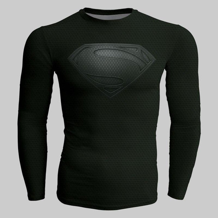 Justice League Henry Cavill Black Superman Cosplay Long Sleeve Compression T-shirt