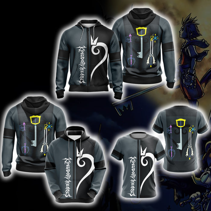 Kingdom Hearts – Weapons Symbol Style Unisex 3D T-shirt with the big pocket front. It’s a good gift for birthday/Christmas and so on.