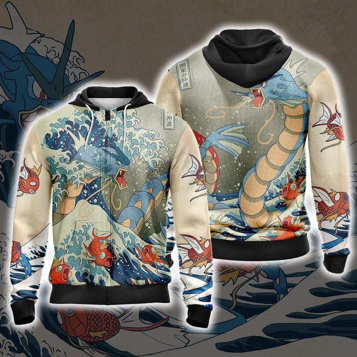 Pokemon – Gyarados Video Game All Over Printed T-shirt Tank Top Zip Hoodie Pullover Hoodie Hawaiian Shirt Beach Shorts Joggers with the big pocket front. It’s a good gift for birthday/Christmas and so on.