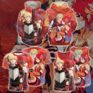 RWBY Jaune and Pyrrha Unisex 3D T-shirt with the big pocket front. It’s a good gift for birthday/Christmas and so on.