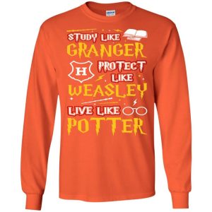 Study Like Granger Protect Like Weasley Live Like Potter Harry Potter Fan T-shirt with polyester is extremely soft and breathable and the sublimation printing technique turns out an awesome design. Colors are guaranteed not to fade. Doesn’t wrinkle.