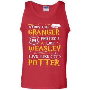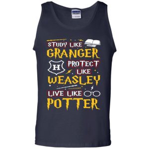 Study Like Granger Protect Like Weasley Live Like Potter Harry Potter Fan T-shirt with polyester is extremely soft and breathable and the sublimation printing technique turns out an awesome design. Colors are guaranteed not to fade. Doesn’t wrinkle.