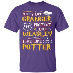 Study Like Granger Protect Like Weasley Live Like Potter Harry Potter Fan T-shirt with polyester is extremely soft and breathable and the sublimation printing technique turns out an awesome design. Colors are guaranteed not to fade. Doesn’t wrinkle.