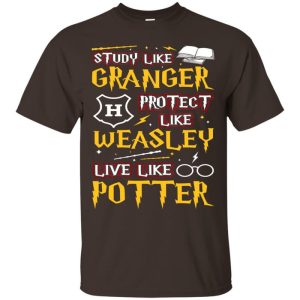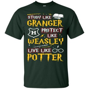 Study Like Granger Protect Like Weasley Live Like Potter Harry Potter Fan T-shirt with the big pocket front. It’s a good gift for birthday/Christmas and so on.