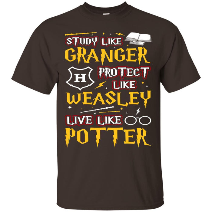 Study Like Granger Protect Like Weasley Live Like Potter Harry Potter Fan T-shirt