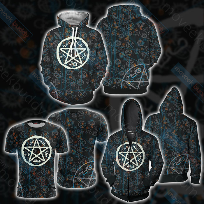 Supernatural – Devil’s trap Unisex 3D T-shirt with the big pocket front. It’s a good gift for birthday/Christmas and so on.
