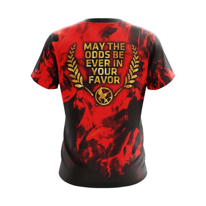 The Hunger Games May the odds be ever in your favor Unisex 3D T-shirt with polyester is extremely soft and breathable and the sublimation printing technique turns out an awesome design. Colors are guaranteed not to fade. Doesn’t wrinkle.