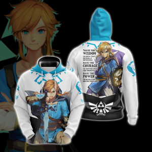 The Legend Of Zelda Link WISDOM COURAGE POWER Unisex 3D T-shirt Zip Hoodie Pullover Hoodie with the big pocket front. It’s a good gift for birthday/Christmas and so on.