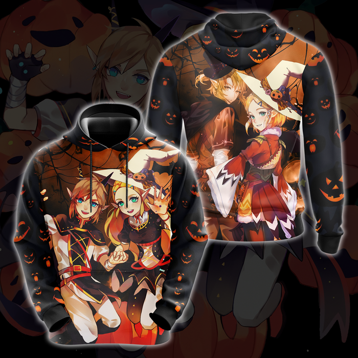 The Legend of Zelda Link & Zelda Halloween All Over Print T-shirt Zip Hoodie Pullover Hoodie with the big pocket front. It’s a good gift for birthday/Christmas and so on.