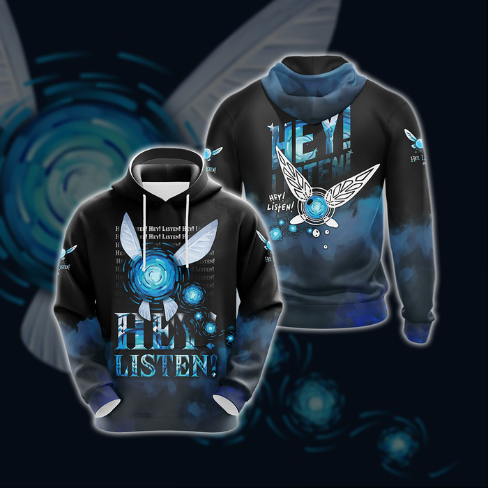 The Legend Of Zelda Navi Fairy Hey Listen Unisex 3D T-shirt Zip Hoodie with the big pocket front. It’s a good gift for birthday/Christmas and so on.