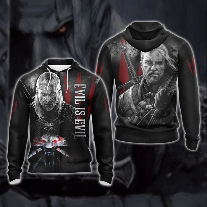 The Witcher – Geralt: “Evil Is Evil” Unisex 3D T-shirt Zip Hoodie