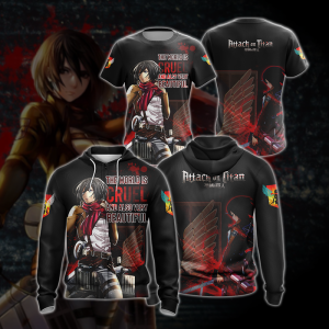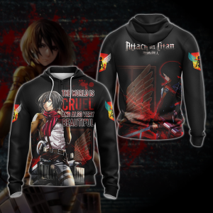 The World Is Cruel and Also Very Beautiful Mikasa Attack On Titan Anime T-shirt Zip Hoodie Pullover Hoodie with the big pocket front. It’s a good gift for birthday/Christmas and so on.