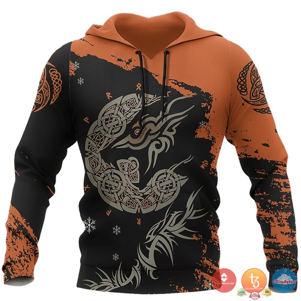 Viking Wolf Orange Black 3D Hoodie