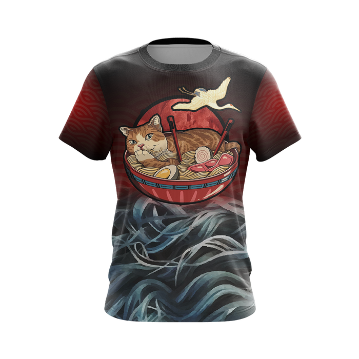 Vintage Cat and Ramen Japanese Style Unisex 3D T-shirt