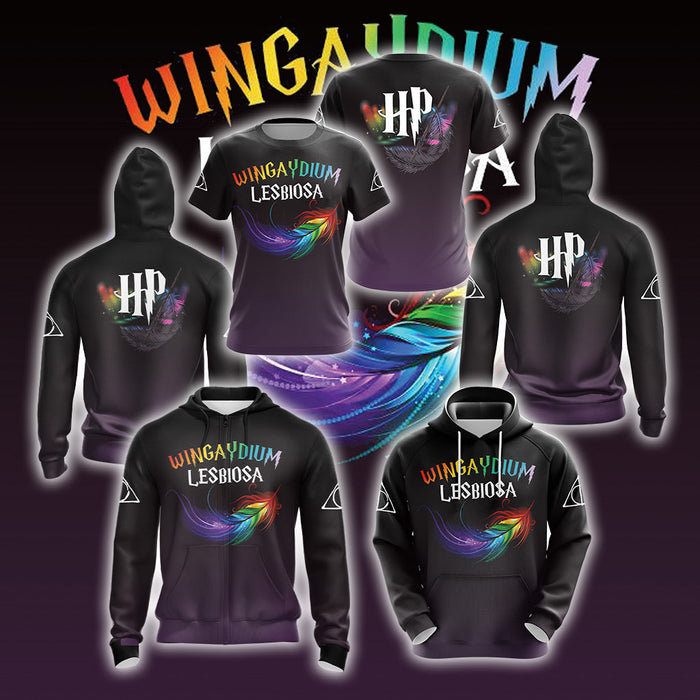 Wingaydium Lesbiosa LGBT Harry Potter Unisex 3D T-shirt with the big pocket front. It’s a good gift for birthday/Christmas and so on.