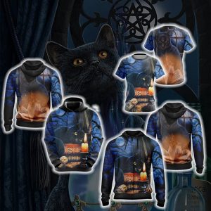 Witching Hour Black Cat Halloween Unisex 3D T-shirt with the big pocket front. It’s a good gift for birthday/Christmas and so on.