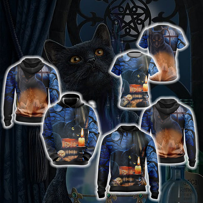 Witching Hour Black Cat Halloween Unisex 3D T-shirt