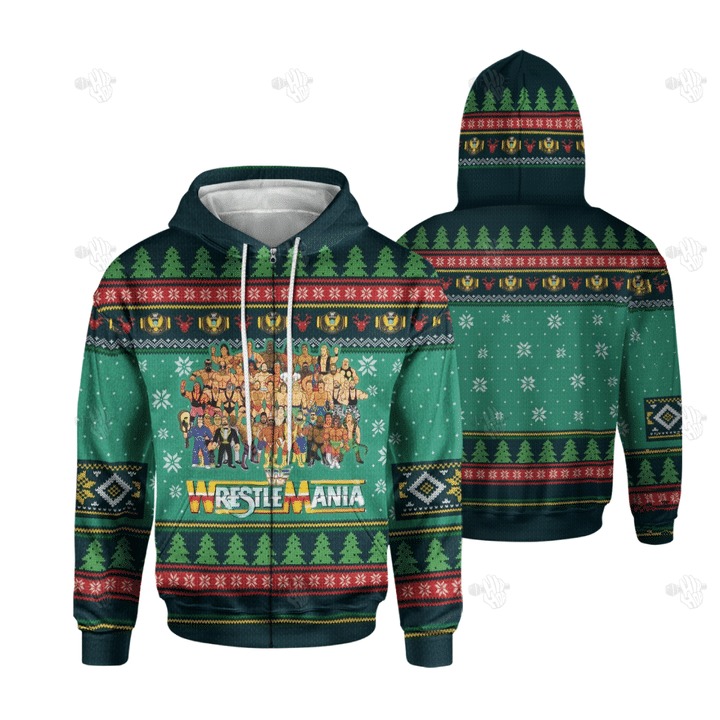 Wrestlemania Christmas 3D Hoodie with the big pocket front. It’s a good gift for birthday/Christmas and so on.
